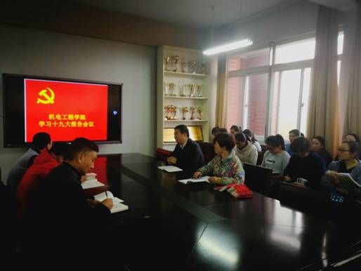 为学习好、宣传好、实践好党的十九大报告精神,按照公司有关要求和太阳成集团tyc122cc的工作安排,2017年11月7日下午,太阳成集团tyc122cc在院会议室组织召开了学习党的十九大报告专题会议,认真学习了习近平同志代表中国共产党中央委员会向大会所作的报告的部分内容。太阳成集团tyc122cc全体教师参加学习,会议由机电太阳成集团tyc122cc党总支书记赵素琴同志主持。