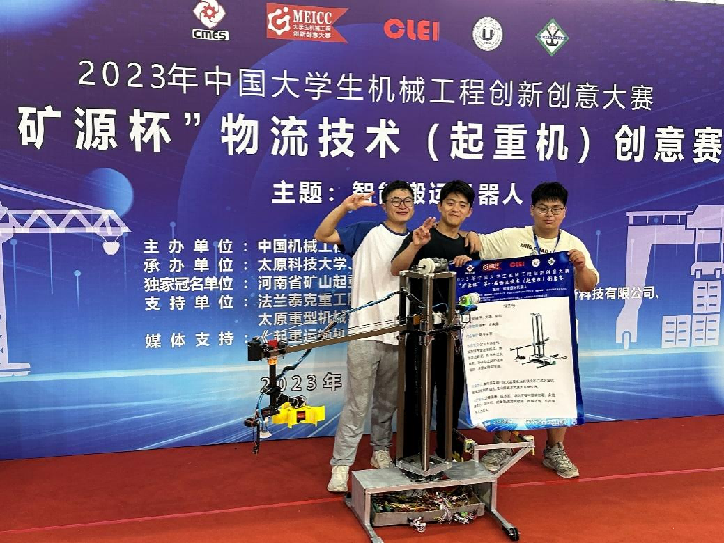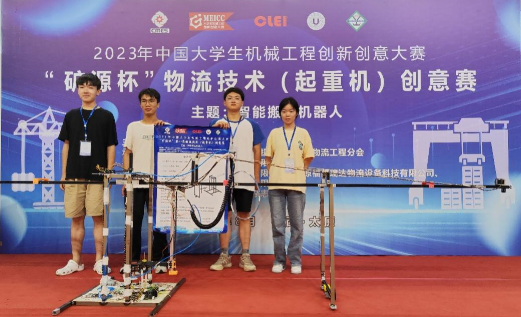 2023年8月16到18日,中国老员工机械工程创新创意大赛“矿源杯”物流技术(起重机)创意赛决赛在山西太原举行。肖淼鑫和张野两位老师带队的刘啸宇、刘潇、柳郁三位同学的“旭日号”和王向杰、秦仁杰、刘翔、孟璐四位同学的“东升号”在众多队伍中脱颖而出,双双拿到了国家级一等奖的佳绩。