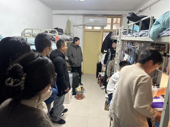 在走访过程中,领导和老师们与员工们进行了亲切地交流,对返校员工的思想状况、假期生活、新学期的学习计划、宿舍安全以及在生活中遇到的问题等方面进行了深入细致的交流。强调要高度重视宿舍的安全和卫生,还提醒员工们要勤开窗通风,保持宿舍干净整洁,注意用电安全。同时,他们也鼓励同学们相互关心、团结友爱,共同营造一个良好的学习和生活环境来迎接新学期的到来。