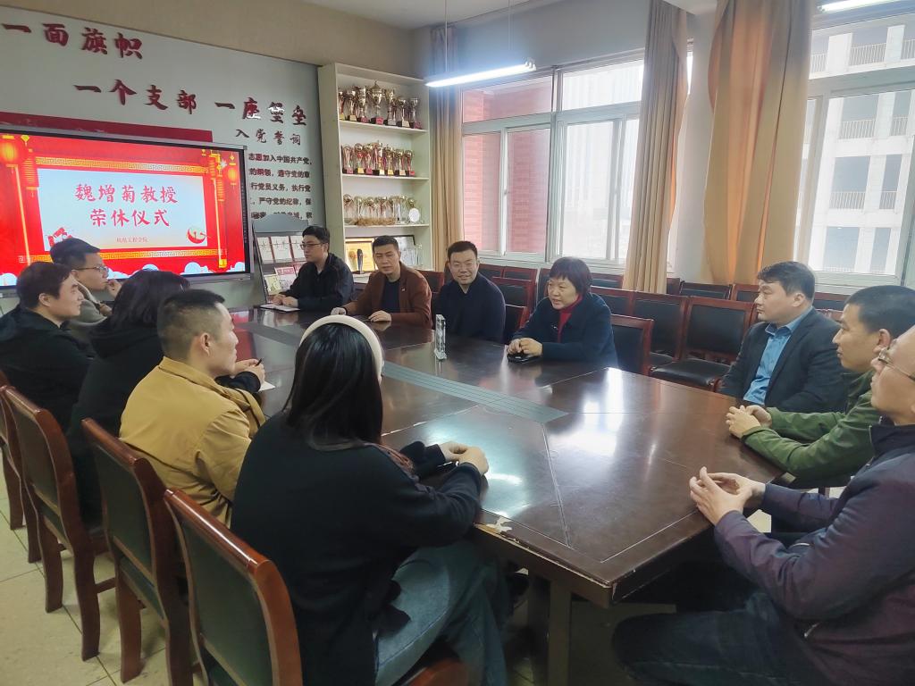 3月15日下午,太阳成集团tyc122cc在公司会议室为光荣退休的魏增菊教授举办荣休仪式。活动由党委书记张烨主持,班子成员和部分教职工参加仪式。