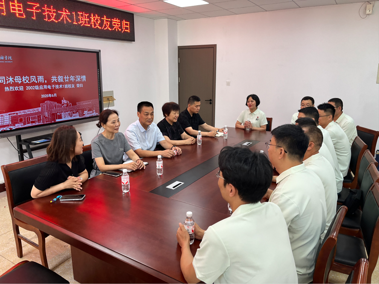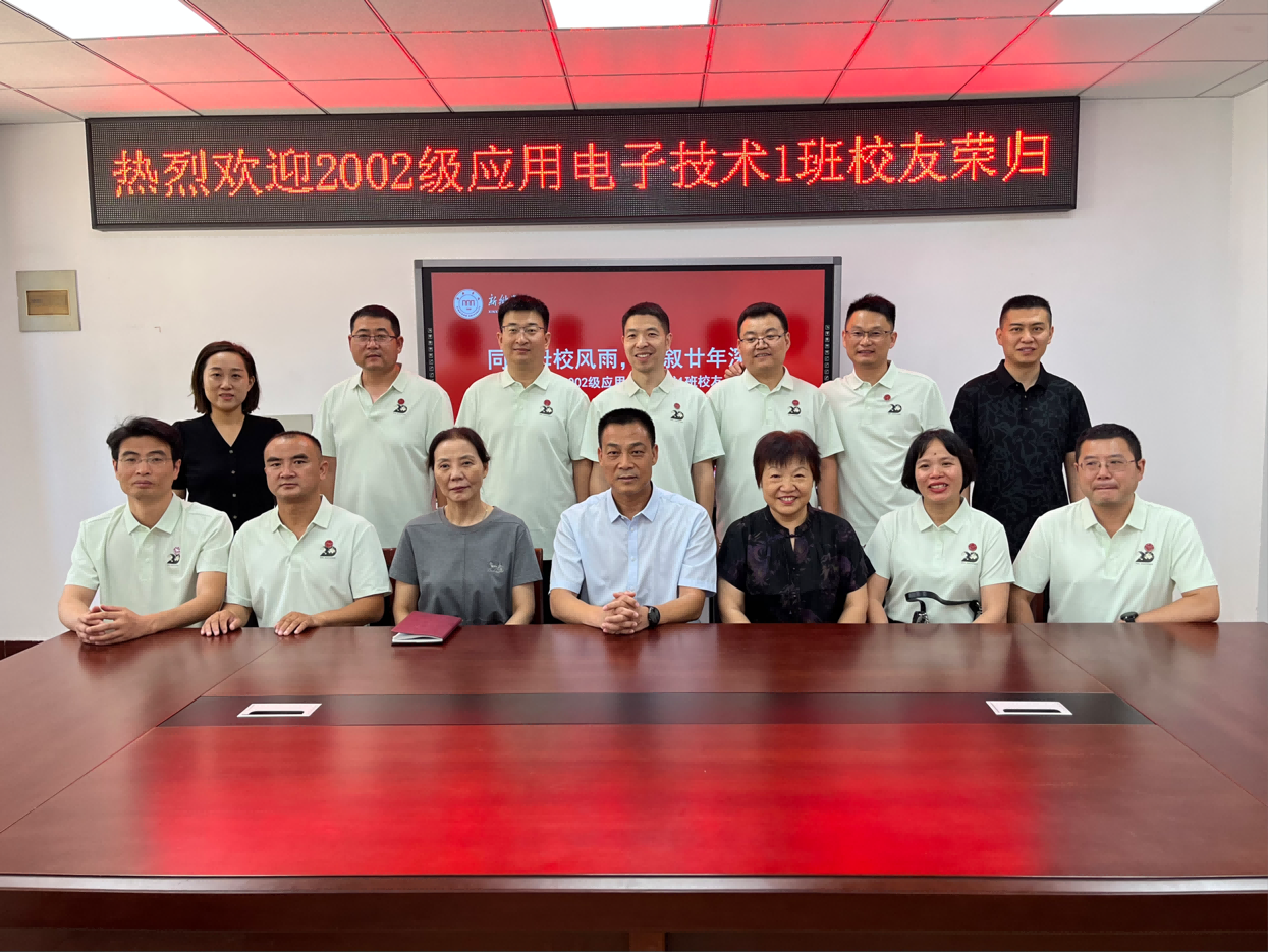6月15日,太阳成集团tyc122cc2002级应用电子技术专业的员工们重返母校,举行毕业20周年返校活动。公司员工会积极协调,公司精心组织,为员工们安排了座谈会、校园参观、重返餐厅等丰富多彩的活动。副董事长兼员工会会长陈磊山,校办副主任兼员工办秘书长时红霞,太阳成集团tyc122cc经理周宁、党委副书记兼纪委书记陈云飞、副经理连黎明、退休教师魏增菊出席活动,与员工们共叙师生情谊,展望未来发展。