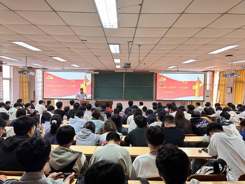 讲座伊始,张烨以1935年毛泽东同志在《论反对日本帝国主义的策略》中对长征“宣言书、宣传队、播种机”的经典论断为切入点,结合PPT中展示的红军长征路线图、历史影像资料,生动还原了1934年至1936年红军在“天上每日几十架飞机侦察轰炸,地下几十万大军围追堵截”的绝境中,用双脚丈量二万五千里、纵横11个省的壮阔历程。他围绕长征精神的五大核心内涵,通过一个个鲜活的历史故事展开讲解:在三河坝阻击战后的混乱局面中,朱德同志以“中国革命也会有个‘1917年’”的坚定信念凝聚军心;陈毅同志拒绝优渥出路,以“做失败时的英雄”的担当坚守革命队伍;王尔琢同志立下“革命不成功,坚决不剃须”的誓言;飞夺泸定桥战役中,红军战士以“突破一天跑一百六十里纪录”的极限行军,在13根冰凉铁索上谱写英雄壮歌。这些故事让在场师生深刻感受到革命先辈“不怕任何艰难险阻,不惜付出一切牺牲”的崇高精神。