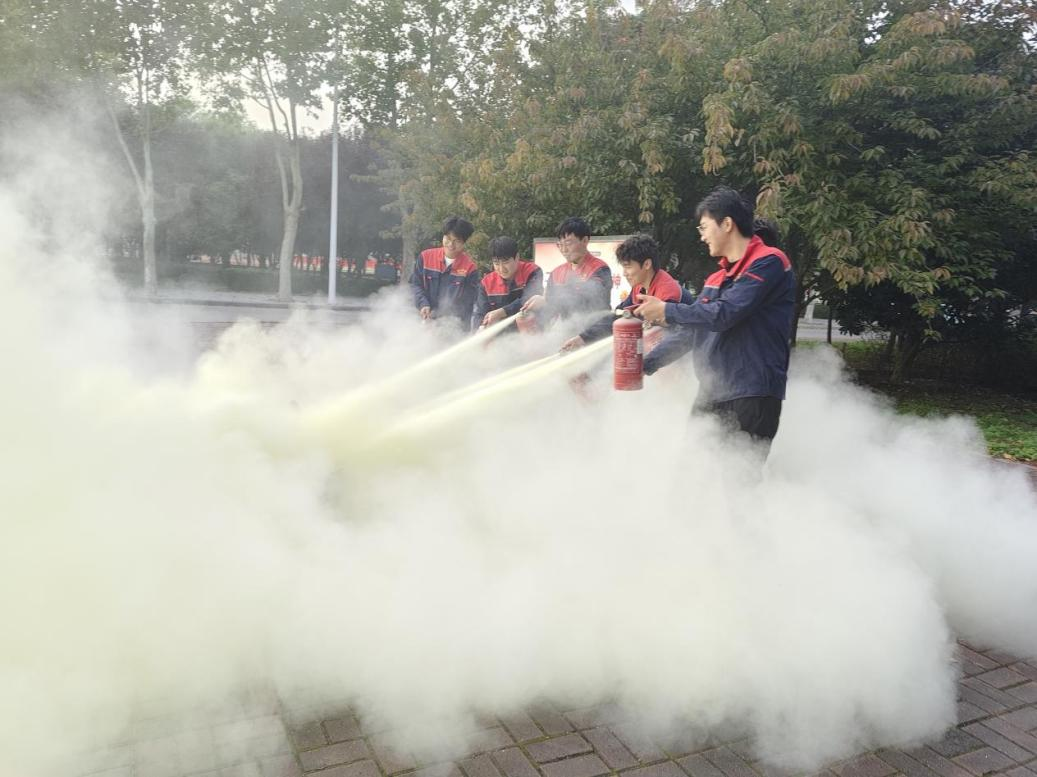 随后的灭火实操环节更是将活动氛围推向高潮。同学们在张教官的指导下,依次上前亲身体验灭火操作。起初,部分同学因紧张出现握不稳喷管的情况,但在教官的耐心指导和自身不断尝试下,大家逐渐掌握技巧,熟练按照“提、拔、握、压”口诀操作,成功扑灭明火。通过此次实操,真正让大家将消防安全理论知识转化为实际技能,收获满满,安全感也大幅提升。