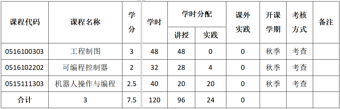 (一)开设课程一览表