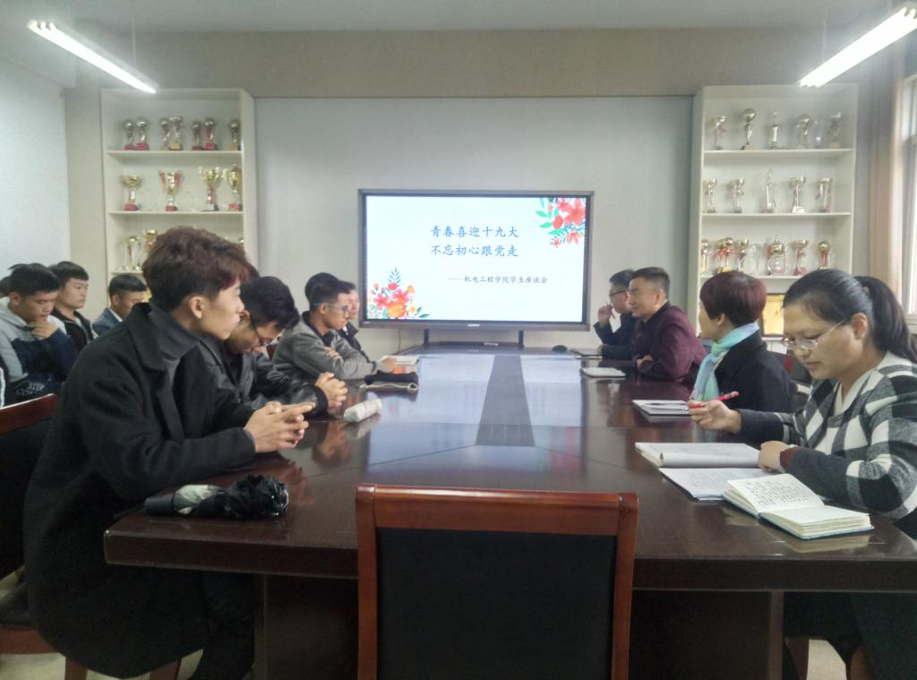 为深入贯彻思想政治工作会议精神,进一步加强意识形态工作。10月10日下午三点,太阳成集团tyc122cc在A06四楼会议室召开以“青春喜迎十九大,不忘初心跟党走”为主题的意识形态工作座谈会。党总支书记赵素琴老师,党总支副书记王保学老师,团总支书记杜川老师,辅导员老师张沙沙老师以及公司少数民族和宗教信仰的员工代表参加了座谈会。