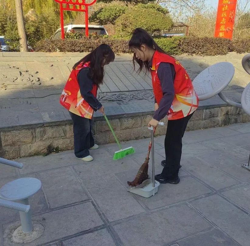 在12月8日下午,2022级机械设计制造及其自动化专业1班团支部的各个同学化身志愿者来到诚城社区。现场同学热情似火,同学们纷纷加入实践活动,团员们先后前往社区小桥、社区小道、健身场地等地,拿起扫把、铲子,清扫道路两旁树叶及纸屑,同学们不怕脏,不怕累,只要发现有垃圾便毫不犹豫捡起。
