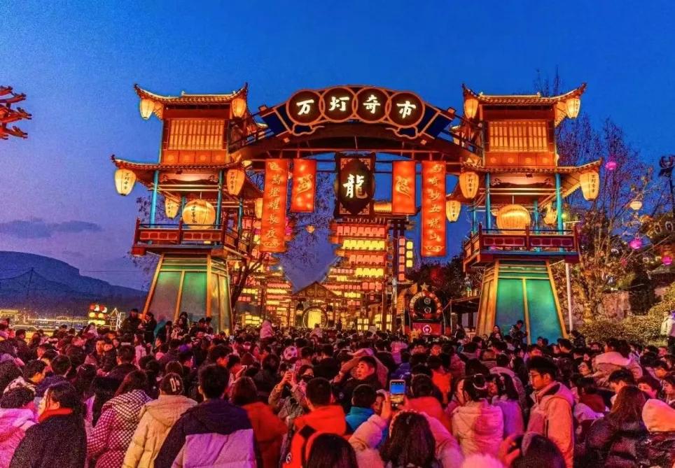 五龙山春节万灯奇市是一个充满欢乐和活力的地方。在这里,彩灯高挂,火树银花,仿佛置身于一个光影交织的世界。人们欢声笑语,共度佳节,气氛热烈而温馨。