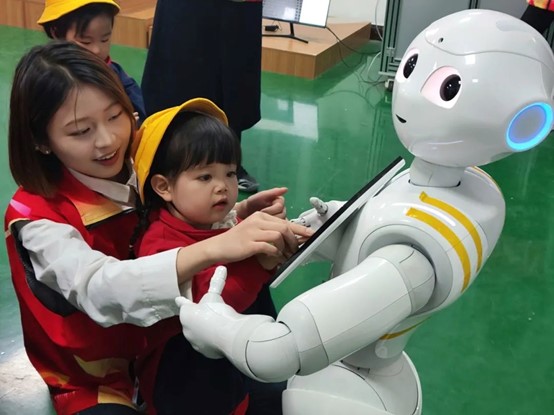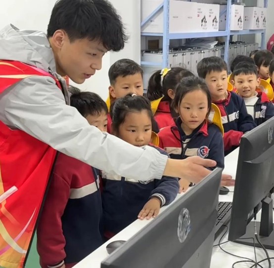 活动现场,志愿者们首先耐心细致地向孩子们介绍了实验室安全规则,确保每位小朋友都能在安全的环境下进行探索。其次,志愿者们依次为小朋友讲解工业机械臂、数字模拟机房、无人机、采摘机器人、五子棋机器人、服务机器人、数字孪生起重机和机械狗等高科技产品,使小朋友们有机会近距离观察各种实验器材,了解基本科学原理,引发小朋友们的奇思妙想,达到启迪智慧、树立科学梦想的目的。