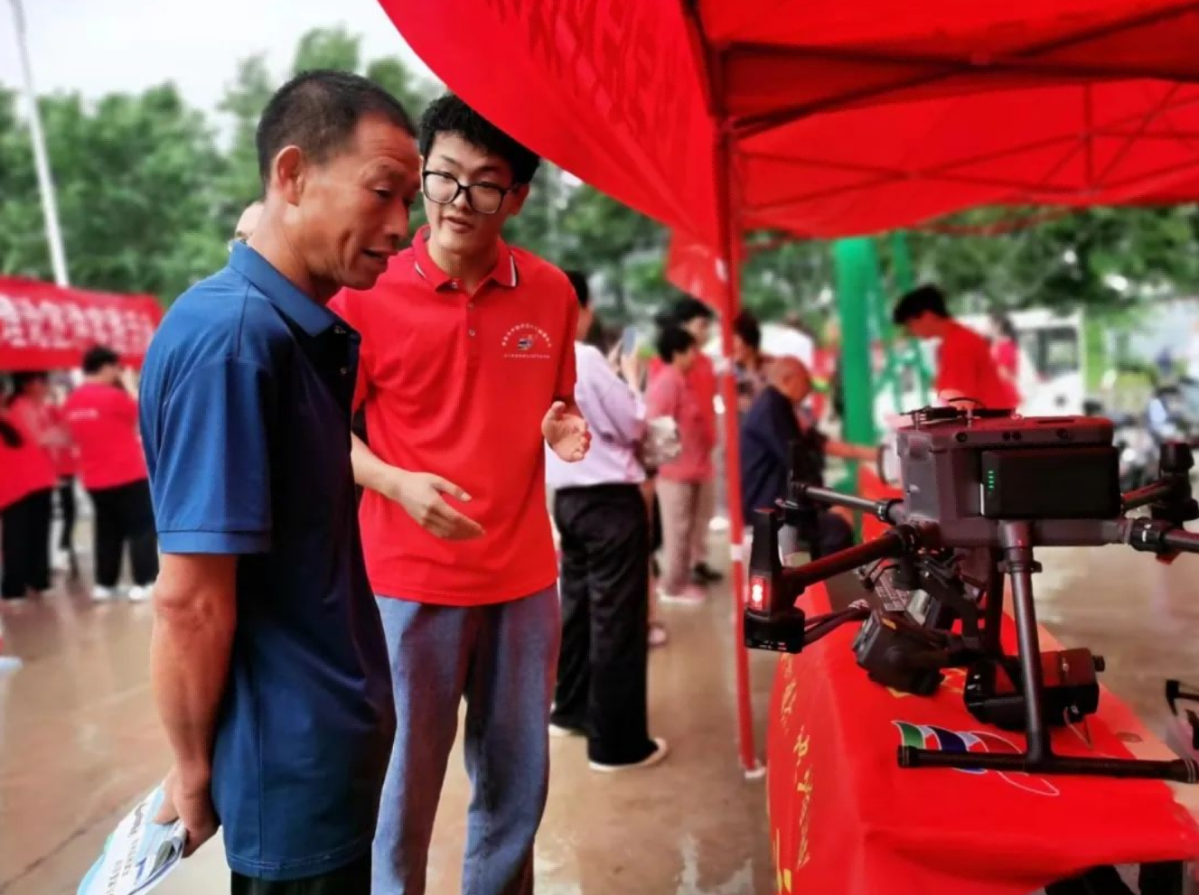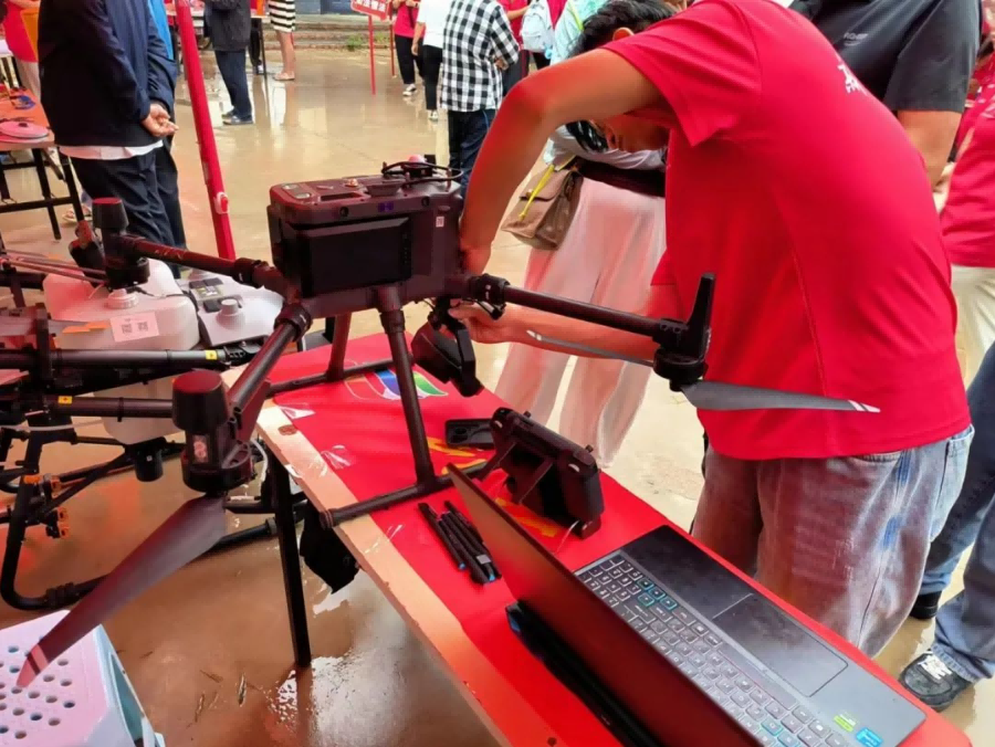 在科技宣讲环节,实践队员们为当地农民和小朋友们详细讲解了无人机的操作方法和应用场景,并且让他们观看无人机的讲解视频。队员们通过生动的案例和实际操作演示,使他们充分了解了无人机在农业中的多种用途,如农作物监测、喷洒农药、播种施肥等。此外,队员们还为农民普及了最新的农业科技知识,包括智能农业设备、科学种植技术等,帮助农民掌握了更多的农业科技知识,提高生产效率。