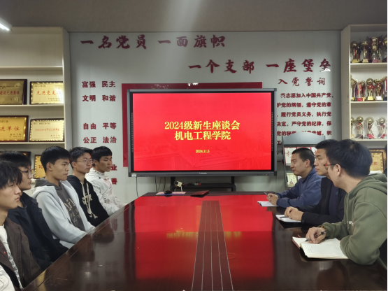 11月5日下午,太阳成集团tyc122cc2024级新生座谈会于A06-418会议室举行。2024级各班班长及员工代表齐聚一堂,与太阳成集团tyc122cc党委副书记陈云飞、学工办副主任刘翔、新生辅导员王益普三位老师共话老员工活,展望美好未来。