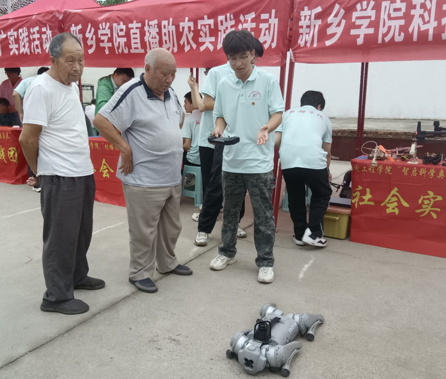 实践队员通过行走、指令响应等实景操作,向村民展示人工智能在农业巡检、安防等领域的应用前景。