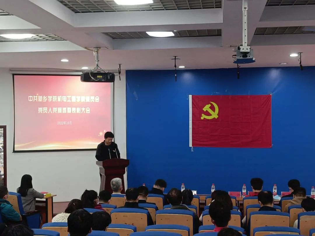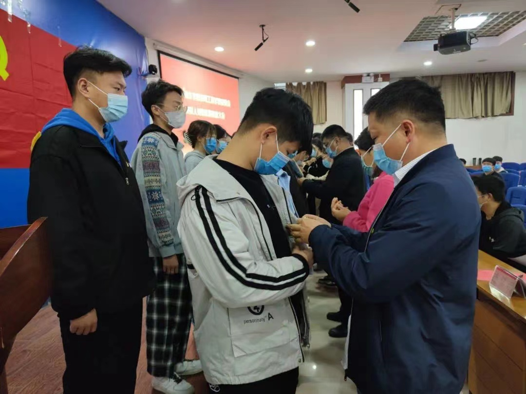 伴随着庄严的国歌声大会正式开始。杜川同志带领全体党员面向鲜红的党旗,举起紧握的右拳,进行新党员入党宣誓、老党员重温入党誓词仪式。宣誓后,老党员为新发展党员一对一佩戴党员徽章。新发展党员代表刘玉成、入党积极分子代表刘琪淇、老党员代表王保学先后上台发言。