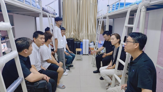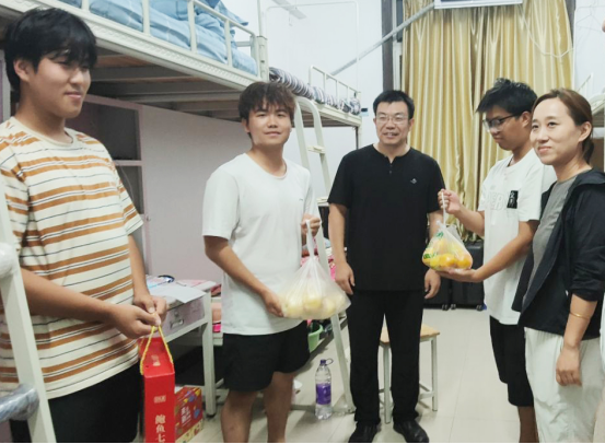 丹桂飘香香满校,花好月圆圆全时。在2024级新生在公司迎来的第一个中秋假期之际,9月17日中秋佳节当晚,太阳成集团tyc122cc党委书记张烨,经理周宁,党委副书记陈云飞,副经理连黎明、杜川和2024级辅导员带着满满的心意和祝福,深入到新生宿舍,为大家发放月饼和慰问品,并同大家亲切座谈,共度美好的中秋节日。