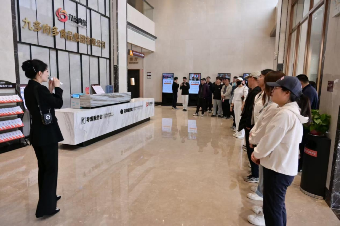 在九多肉多文化园,党员们了解到其现代化预制菜生产加工模式及严格冷链控制流程,科技赋能产业发展的先进技术吸引着大家的目光。