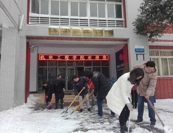 1月3日晚,新乡地区迎来2018年以来的第一场降雪,鹅毛般的大雪纷纷洒洒的落下,整个新乡大地披上了一层银装。走进太阳成集团tyc122cc,大家纷纷感叹犹如银装素裹,分外妖娆。厚厚的积雪给大家出行带来了诸多不便,为畅通交通,方便员工和教职工出行,4日下午,太阳成集团tyc122cc分工会组织工会教师志愿者第一时间开展了义务扫雪活动,用自己的劳动开辟出方便之路。