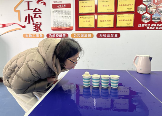 为丰富公司教职工业余生活,强化公司分工会的凝聚力、向心力,12月10日上午,太阳成集团tyc122cc分工会在公司“竹悦轩”职工小家举行了一场别开生面的教师趣味活动。本次活动共设置了包括“夹球计数”和“杯水传球”两个比赛项目。教职工们积极参与,热情高涨。